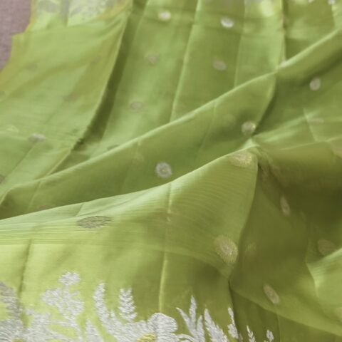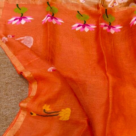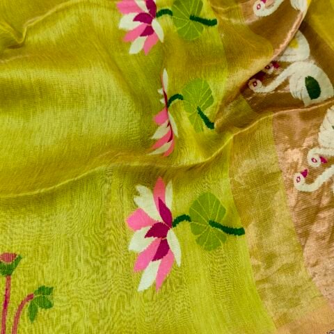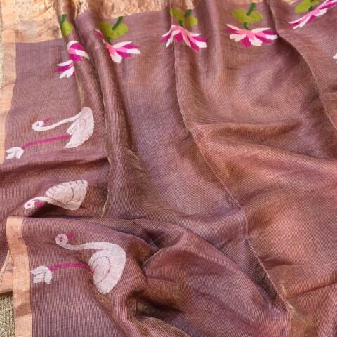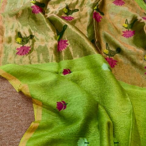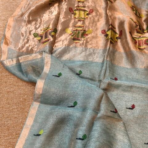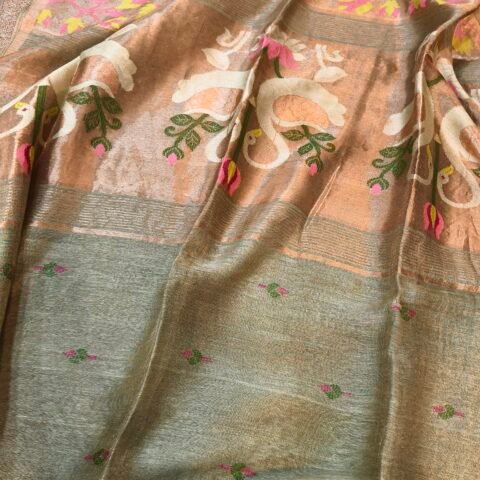 Handloom Linen Silk Tissue Jamdhani -Swan design