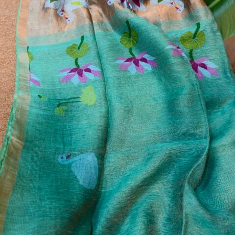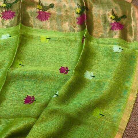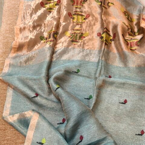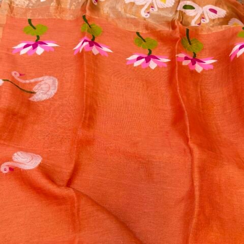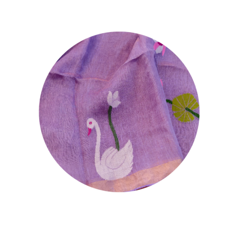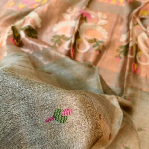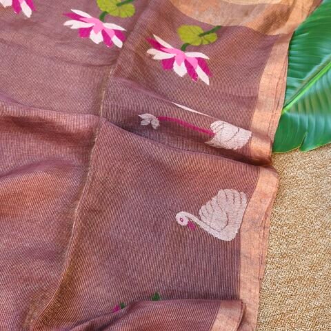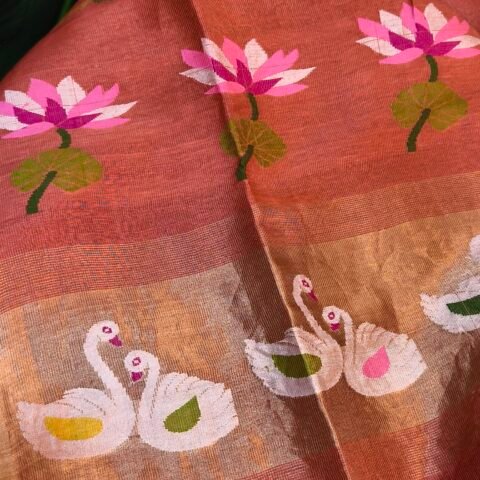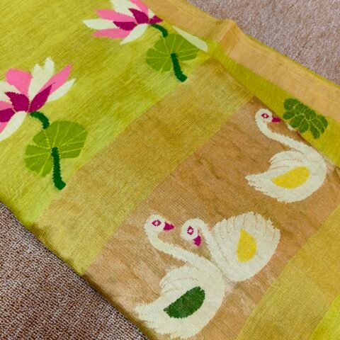 Handloom Linen Silk Tissue Jamdhani -Swan design