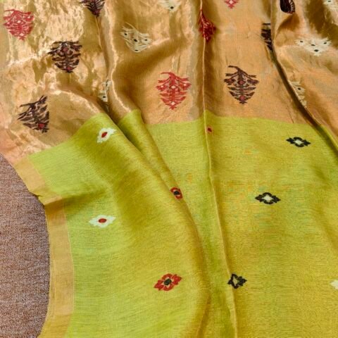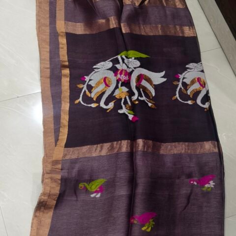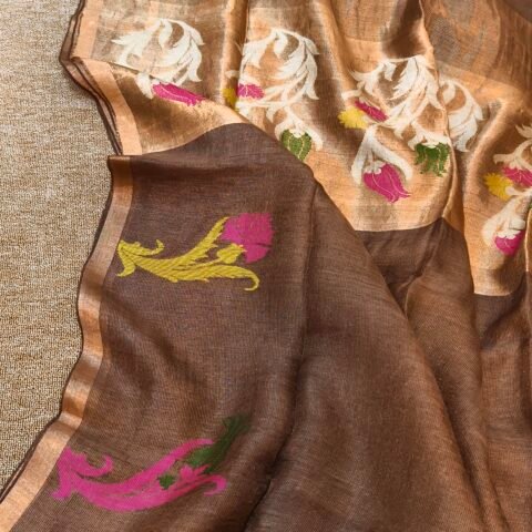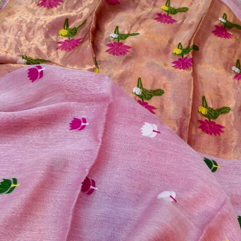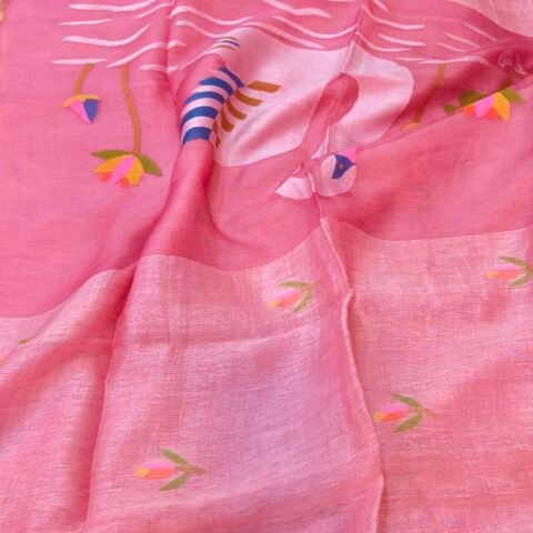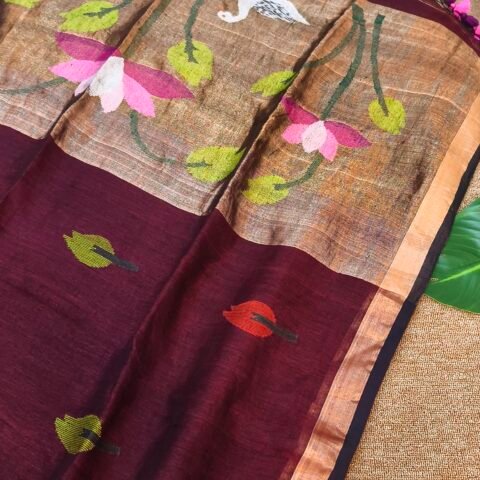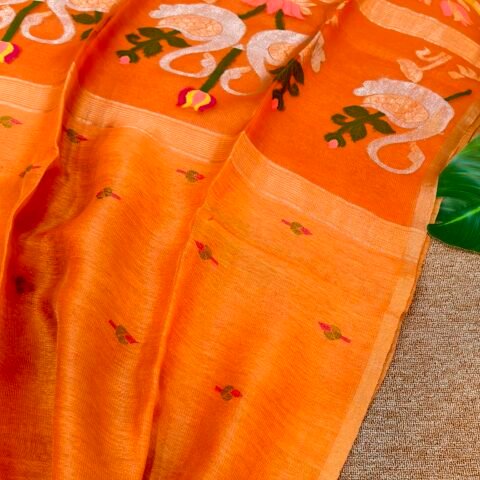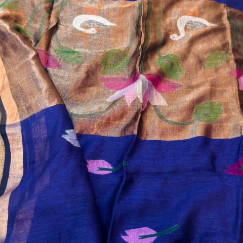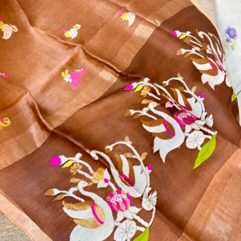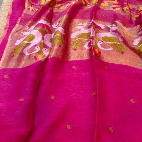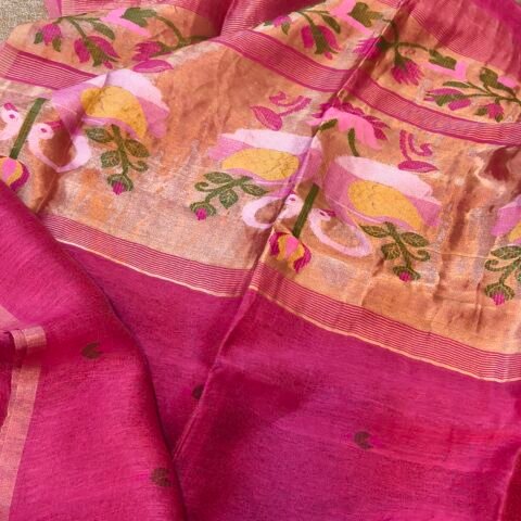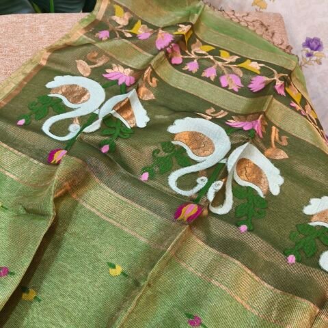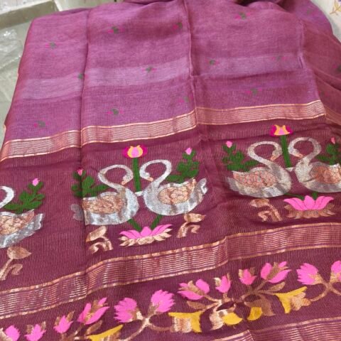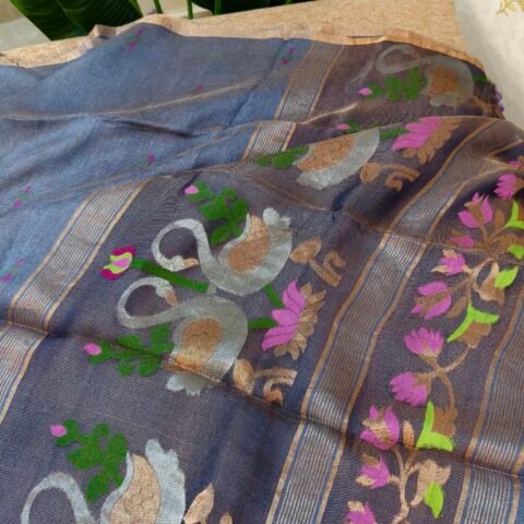 Handloom Linen Silk Tissue Jamdhani -Swan design