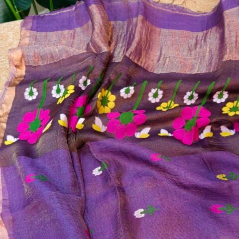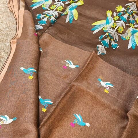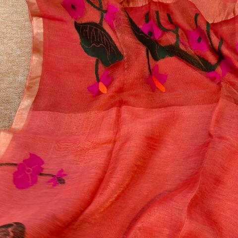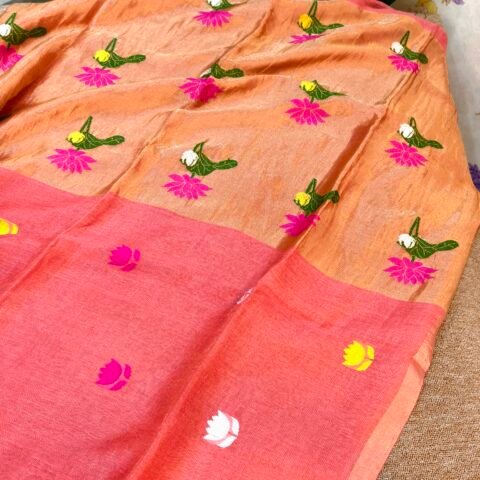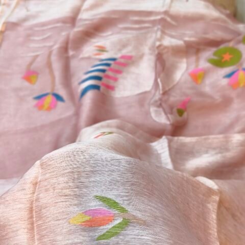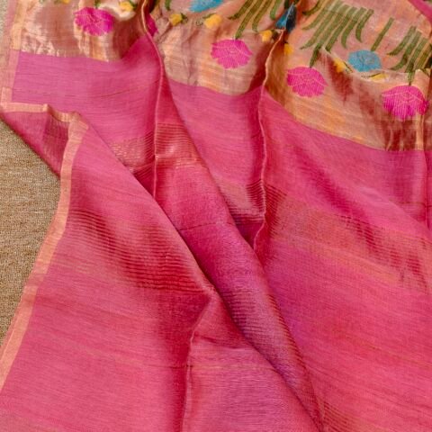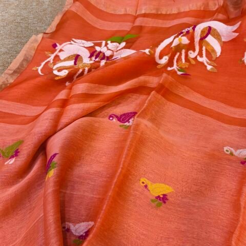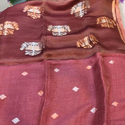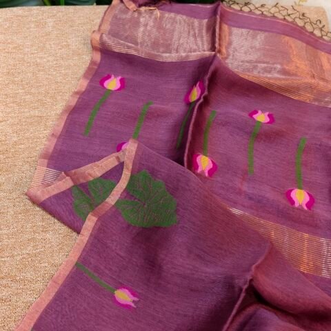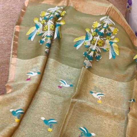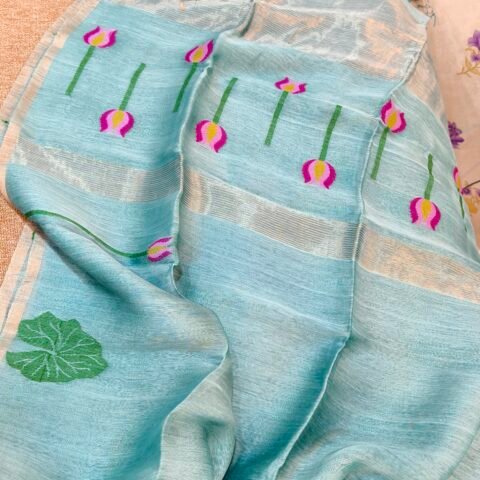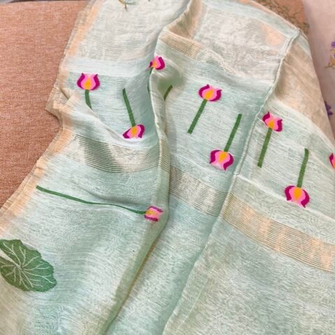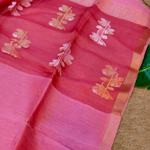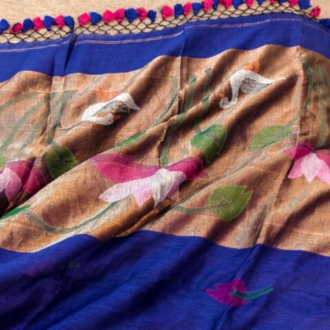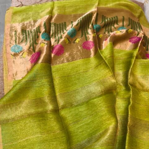 Handloom Linen Silk Tissue Jamdhani -Swan design