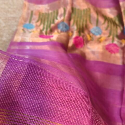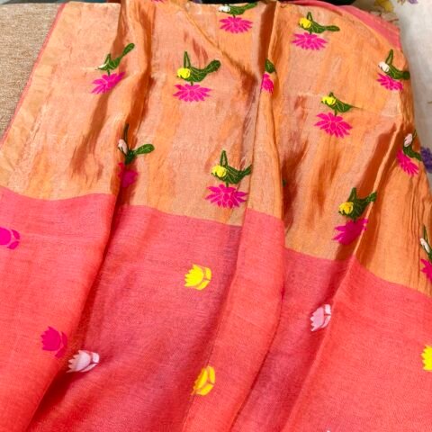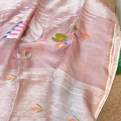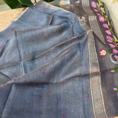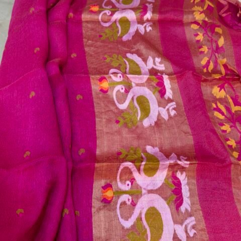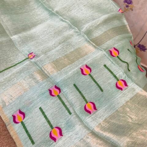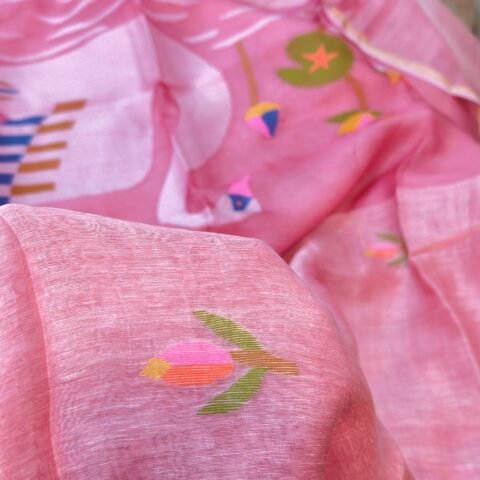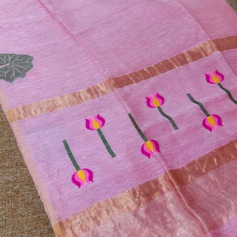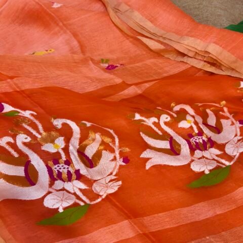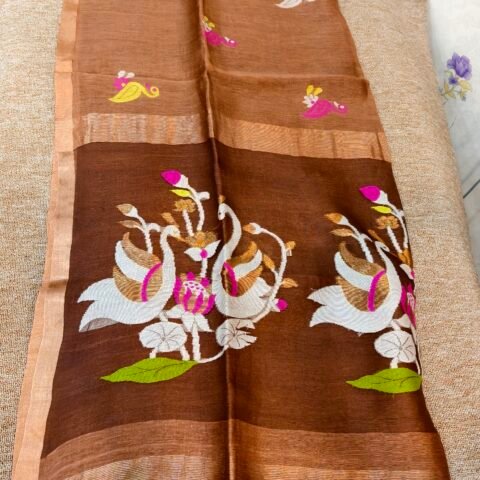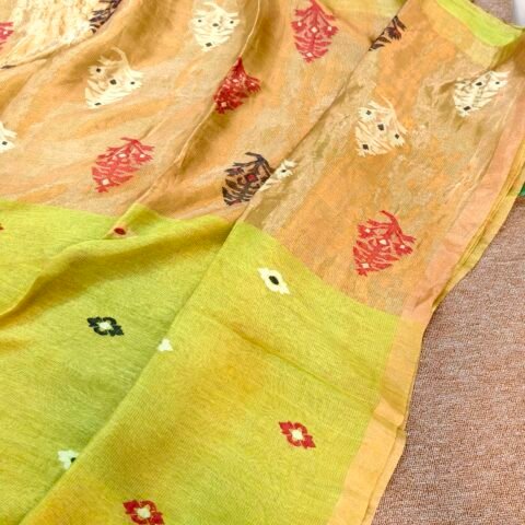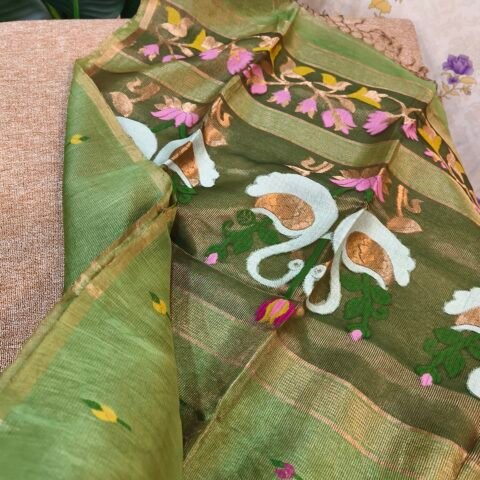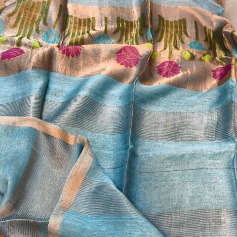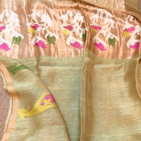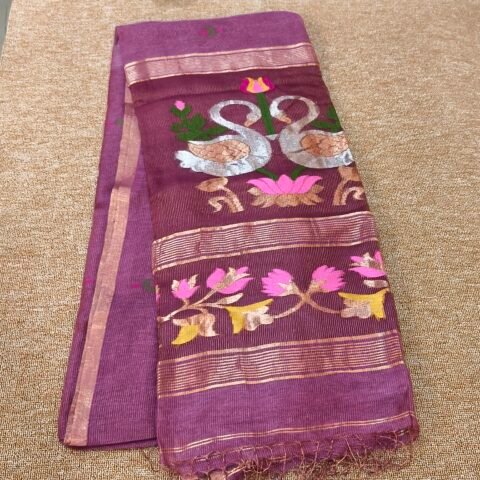 Handloom Linen Silk Tissue Jamdhani -Swan design