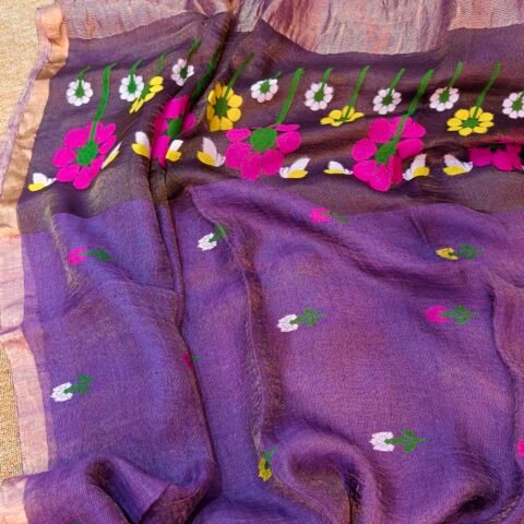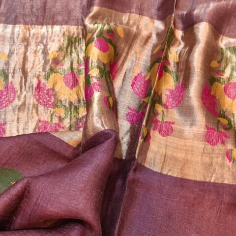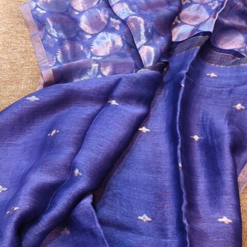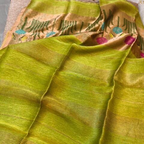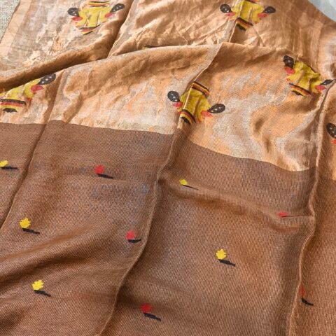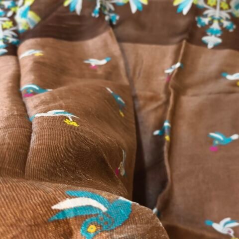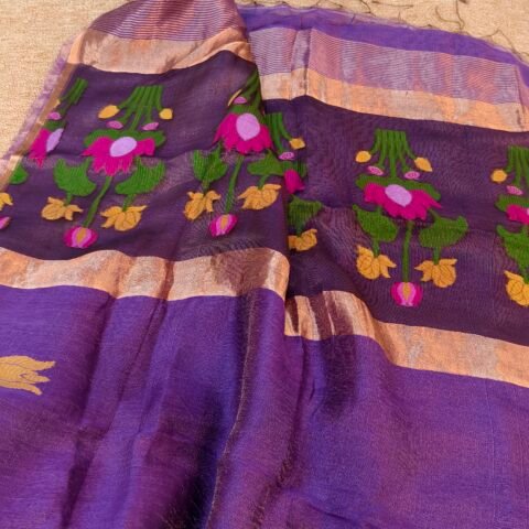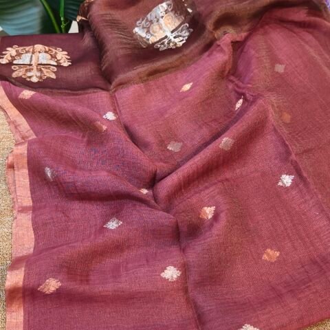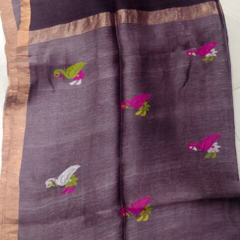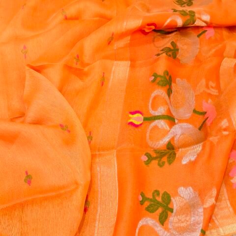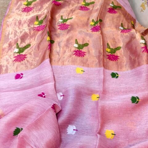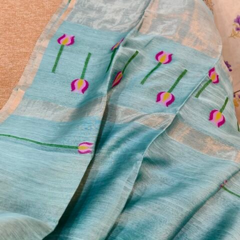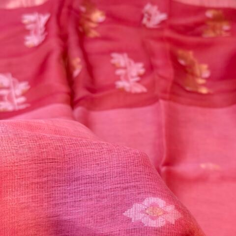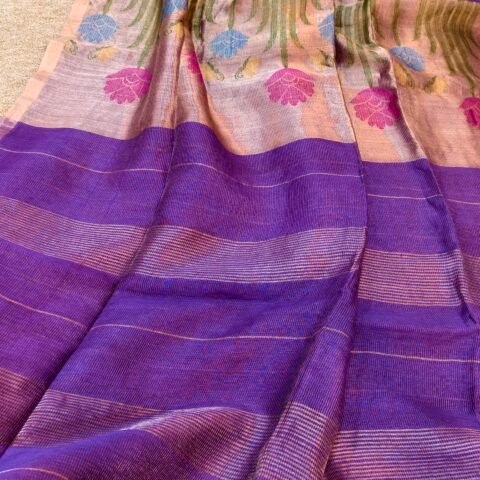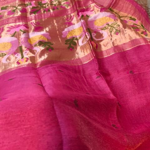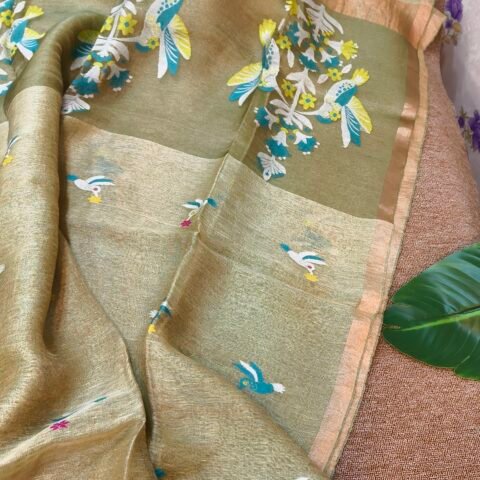 Handloom Linen Silk Tissue Jamdhani -Swan design