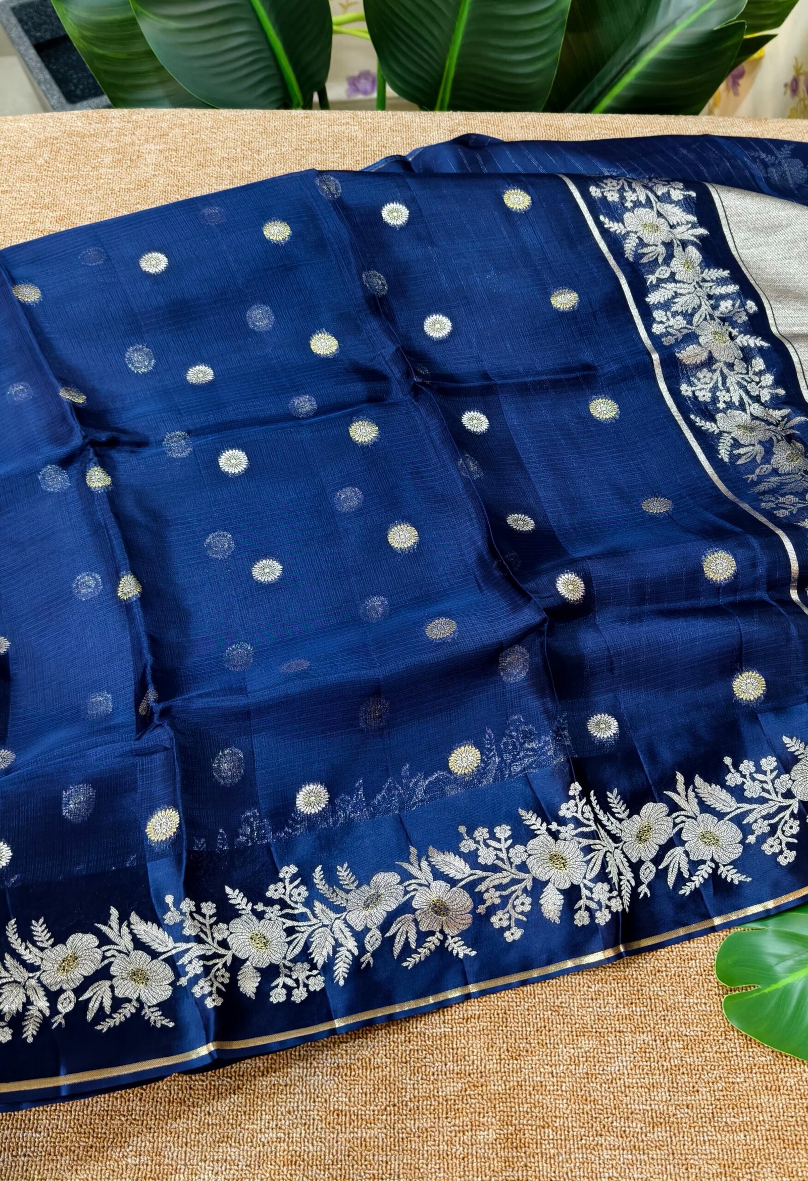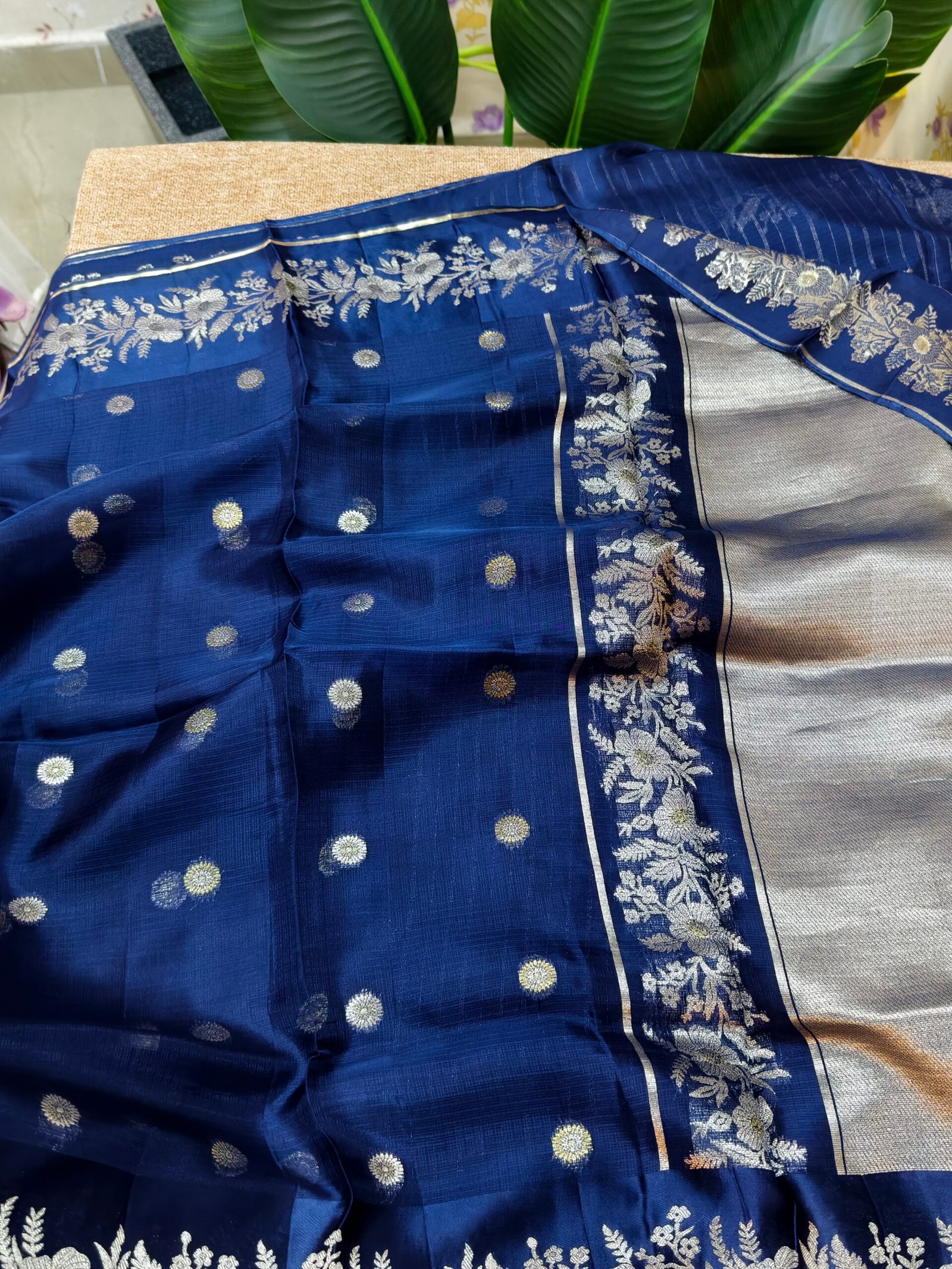 Crafted from fine Kota silk, also called Kota Doria silk — a blend of cotton and silk yarns that gives it a lightweight, airy feel.
