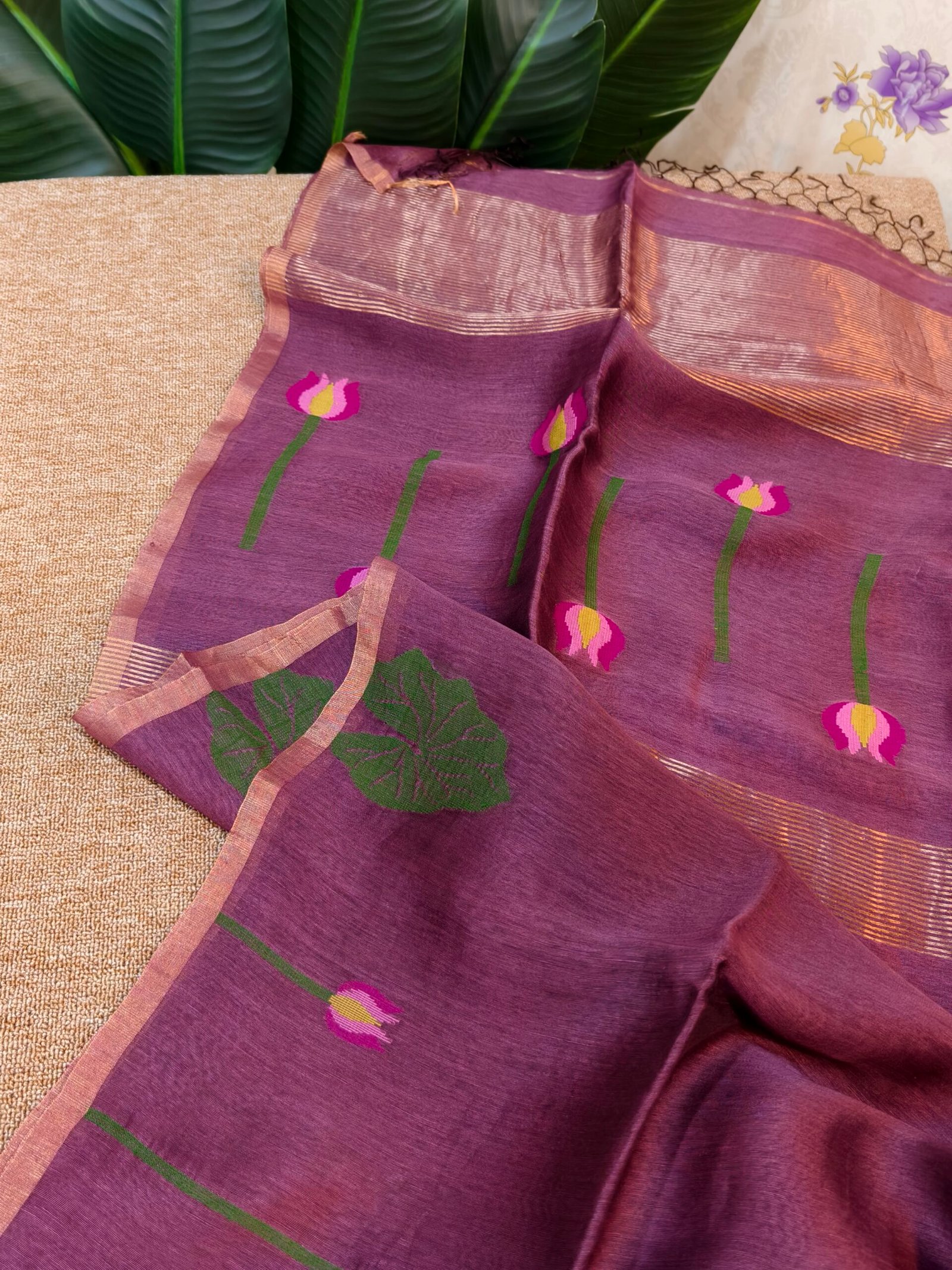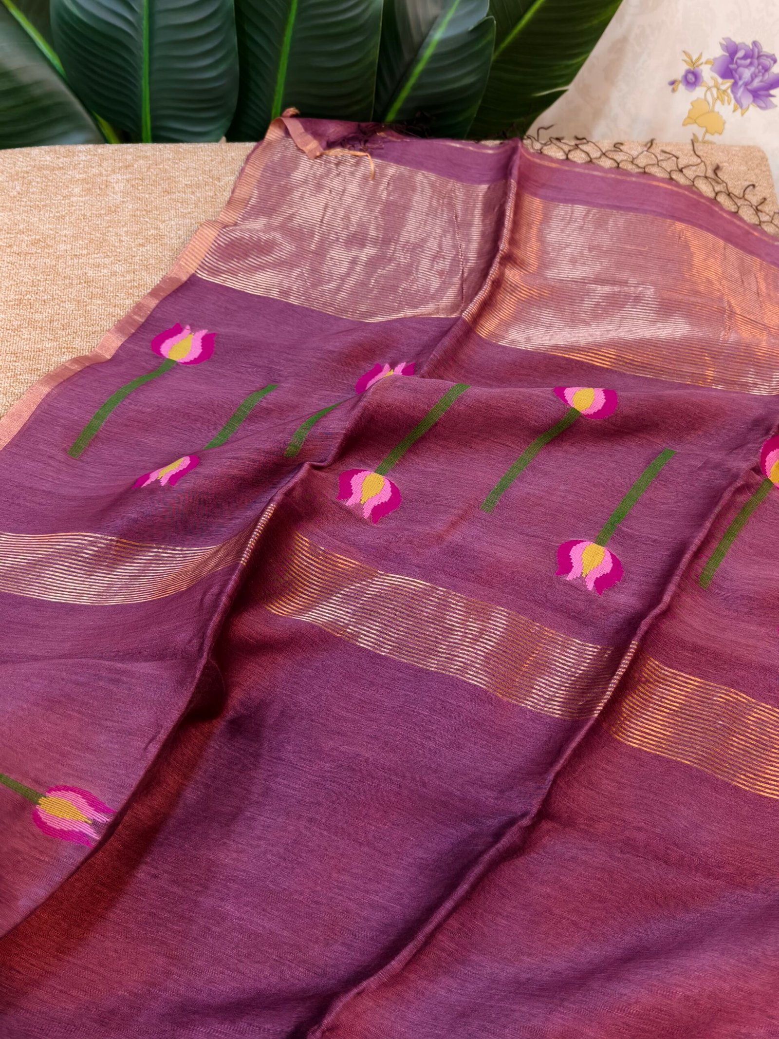 A handloom linen-silk Jamdani saree is a premium, handcrafted garment that blends the rustic, airy texture of linen with the soft sheen and strength of silk, adorned with intricate, hand-woven Jamdani motifs.