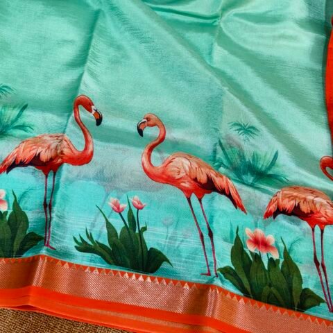 Crafted from a luxurious blend of linen silk and tissue, the saree offers a beautiful balance of softness, sheen, and breathable comfort. The lightweight texture drapes gracefully, while the subtle metallic glow of tissue yarn adds a refined festive charm