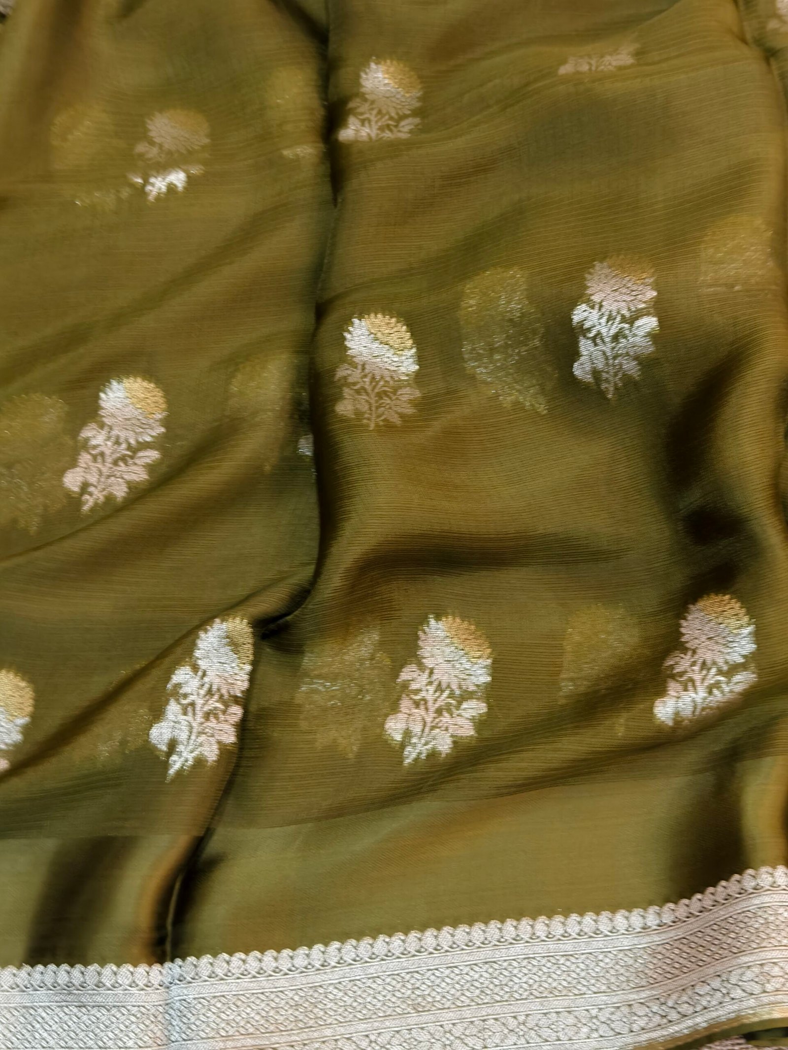 Crafted from fine Kota silk, also called Kota Doria silk — a blend of cotton and silk yarns that gives it a lightweight, airy feel.