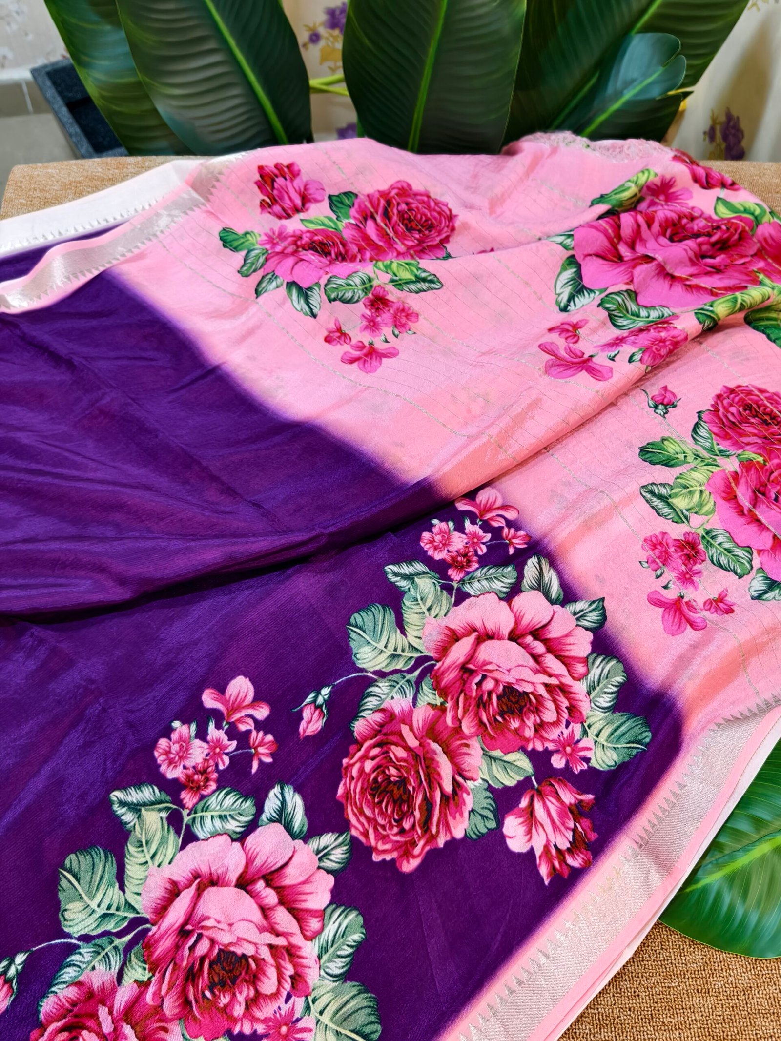 A mangalagiri is a traditional Indian saree known for its lightweight, sheer and shimmering fabric — the term “tissue” refers to its delicate, almost translucent texture. They are typically woven from fine silk blended with metallic threads (zari), which gives the saree its elegant shine and glossy finish.