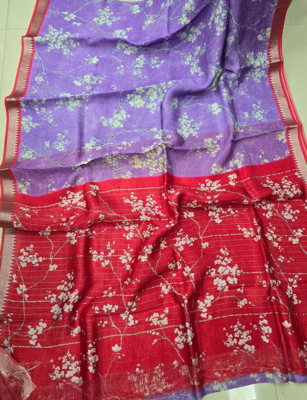 A mangalagiri is a traditional Indian saree known for its lightweight, sheer and shimmering fabric — the term “tissue” refers to its delicate, almost translucent texture. They are typically woven from fine silk blended with metallic threads (zari), which gives the saree its elegant shine and glossy finish.