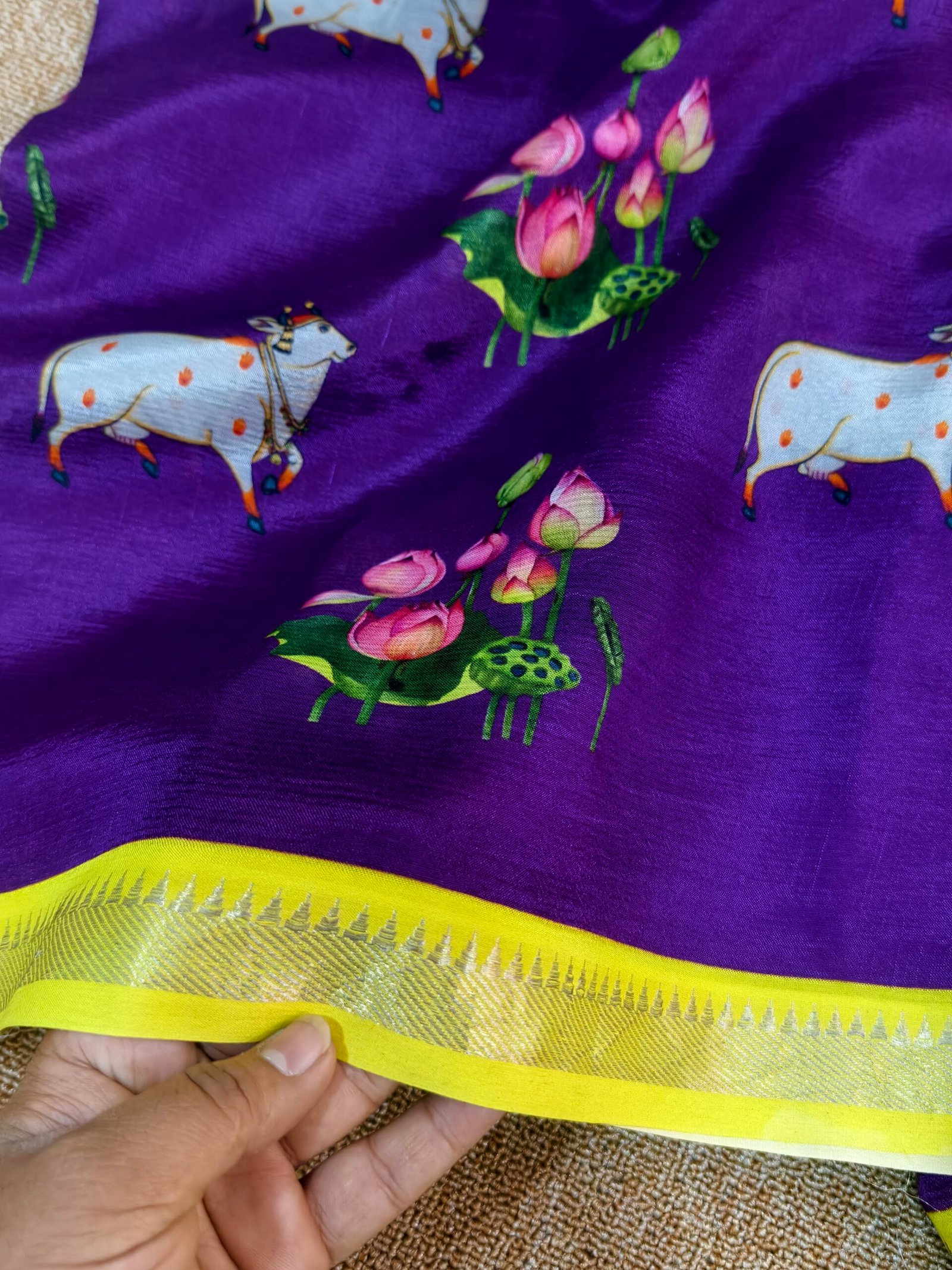A mangalagiri is a traditional Indian saree known for its lightweight, sheer and shimmering fabric — the term “tissue” refers to its delicate, almost translucent texture. They are typically woven from fine silk blended with metallic threads (zari), which gives the saree its elegant shine and glossy finish.